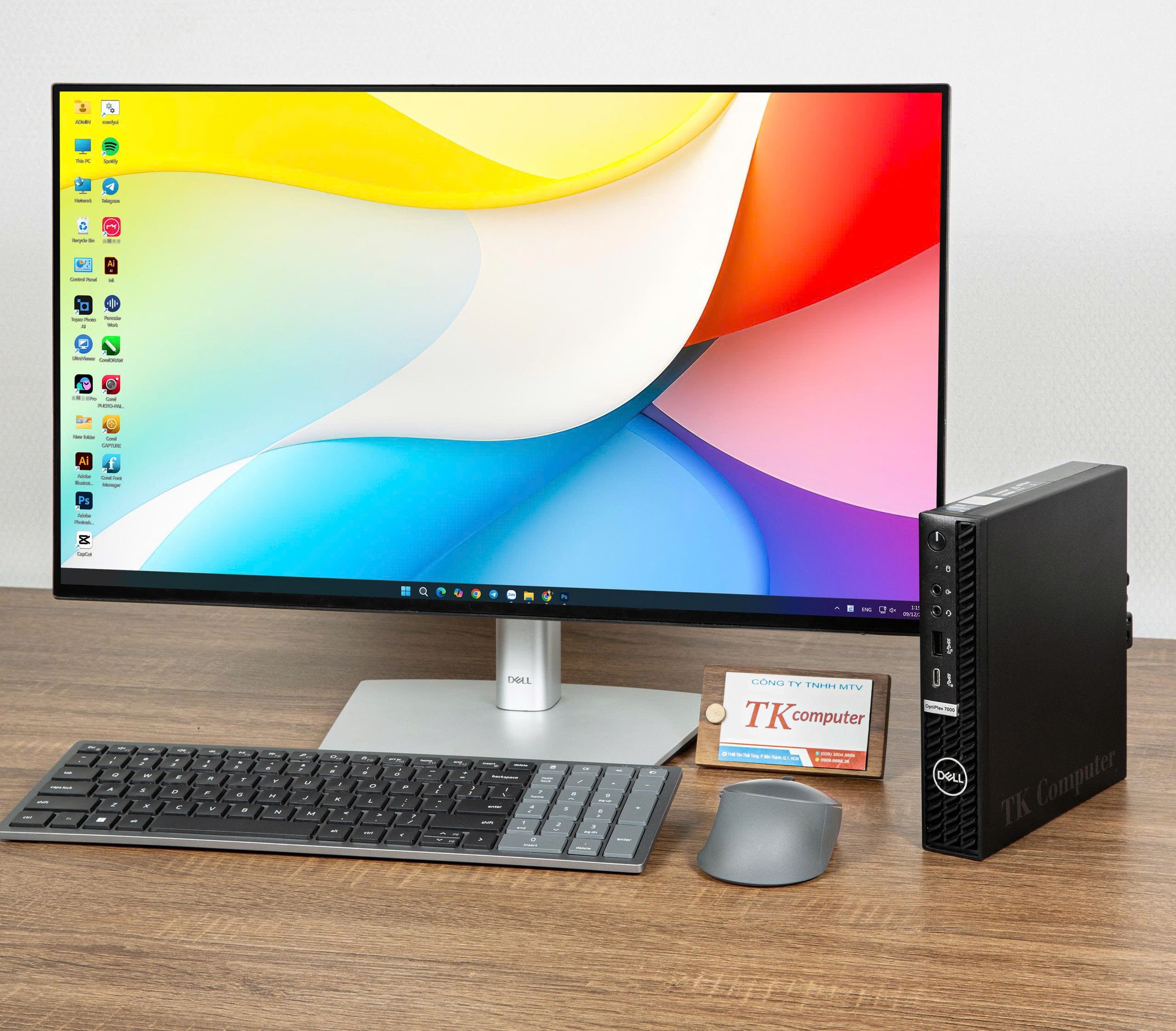 Với kích thước nhỏ, chạy êm và tiết kiệm điện, Dell Optiplex 7000 Micro phù hợp cho các vị trí kế toán, thu ngân, nhân sự, bán hàng hoặc phòng ban cần mở nhiều ứng dụng văn phòng liên tục. Thiết kế như trong hình cho thấy máy dễ bố trí trên mọi bàn làm việc mà vẫn giữ không gian gọn gàng, chuyên nghiệp.
